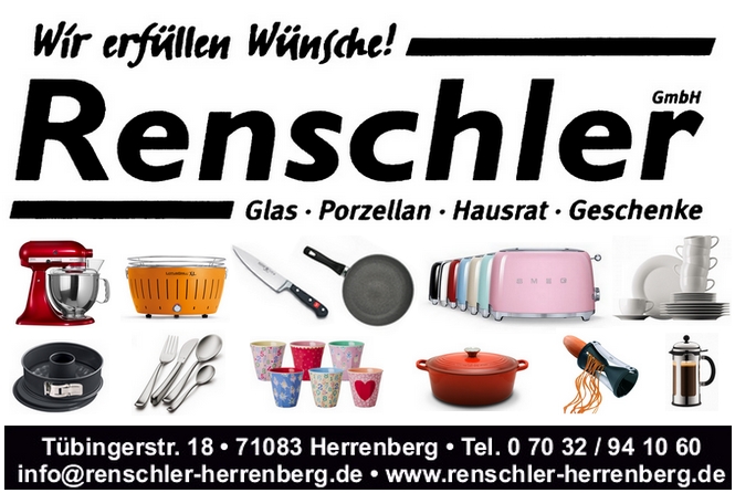 Renschler - das Traditionshaus und Fachgeschäft für Küche, Haushalt, gedeckter Tisch und Geschenke- seit 5 Generationen in Herrenberg: